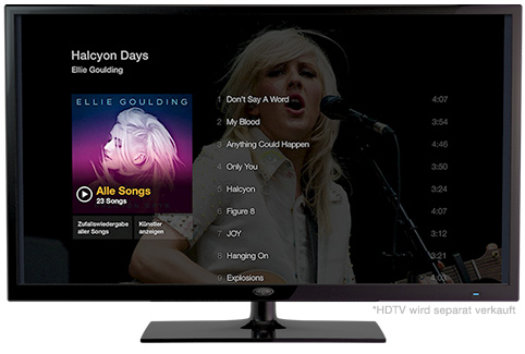 | Fernseherkompatibilität | Kompatibel mit HD-Fernsehgeräten mit HDMI-Eingang, die bei 60/50 Hz 1080p- oder 720p-fähig sind, einschließlich beliebter HDCP-kompatibler Modelle folgender Hersteller: LG, Panasonic, Philips, Samsung, Sharp, Sony, Toshiba, iSymphony, Digihome, Vizio, Westinghouse |