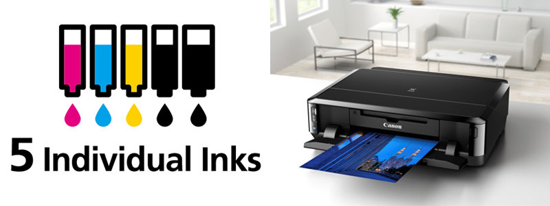 Leistungsstarker Fotodrucker mit 5 separaten Tintentanks, WLAN und Druckmöglichkeit von Smartphones. Flaches Design mit zwei integrierten Papierkassetten, Auto Duplex Druck Druck und Direct Disc Print.