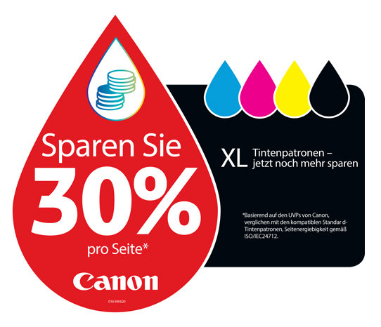 Separate Tintentanks sind besonders effizient, weil nur die Tinten ausgetauscht werden müssen, die auch verbraucht sind. XL-Tinten müssen weniger häufig ausgetauscht werden – ideal, wenn Sie viele Dokumente drucken. Sparen Sie zusätzlich 30% pro Seite.