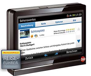 Vorinstallierte MARCO POLO-Reiseführerinhalte bieten Informationen zu hunderten Städten und hunderttausenden POIs. Jetzt inklusive Baedeker 3D-Grafiken. Reisetipps von anderen aufs eigene Navi laden, eigene erstellen, bewerten und mit der Community teilen.