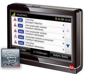 Falk Navis mit dem Premium Verkehrsdienst NAVTEQ Traffic (TMCpro) führen Sie in Deutschland sicher an jedem Stau vorbei. Frühzeitig werden Sie über einen Stau informiert und umfahren diesen auf Wunsch auf einer Alternativroute. Das spart Zeit und Nerven und Sie kommen immer entspannt ans Ziel.