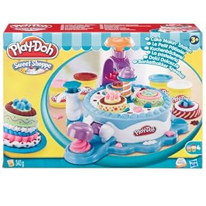 Fazit: In der Play-Doh Kuchenbäckerei kommt garantiert keine Langeweile auf. Stundenlang können kleine Knet-Konditoren ab drei Jahren ihrer Kreativität freien Lauf lassen. Verschiedene Kuchenformen, Stempel, Backutensilien und passende Accessoires sorgen ebenso wie die 4 enthaltenen Dosen Play-Doh für ausgiebigen Back- und Knetspaß. Wer von der Play-Doh Softeismaschine begeistert war, der wird die Kuchenbäckerei lieben!