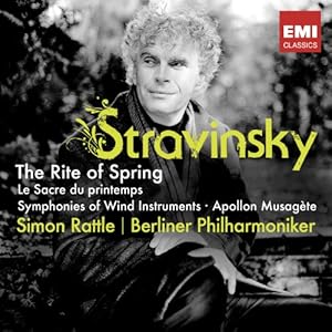 "Das Theater schien von einem musikalischen Erdbeben heimgesucht zu werden. Die Leute schrien Beleidigungen, buhten und pfiffen, übertönten die Musik. Es setzte Schläge und sogar Boxhiebe". So eine Zeitzeugin über die Sacre-Uraufführung 1913. Rattles Aufnahme des Sacre – heute längst ein Repertoire-Klassiker – entstand im November 2012 in dichter Live-Atmosphäre. "Die Intensität, Schärfe und Präsenz, mit der das Orchester Rattles Interpretation belebte, war überwältigend", schrieb klassik.com. Das Frühlingsopfer von 1913/47 ist gekoppelt mit zwei Orchesterwerken des Russen aus den 1920er-Jahren, die ebenfalls in Strawinskys Fassung von 1947 als Konzertmitschnitte erscheinen: Die Bläsersinfonie gilt als formal besonders originelles Werk mit farbigen Klang-flächen, das neoklassizistische Ballett Apollon Musagète ist Strawinskys thematischer Rückgriff auf die Antike: Apoll, der Gott des Lichts und der Künste, führt die Musen zum Parnass..