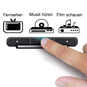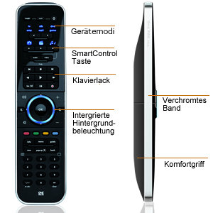- nicht komplett hintergrundbeleuchtet, es leuchtet bei Tastendruck nur der mittlere Ring und die gewählte Gerätetaste
