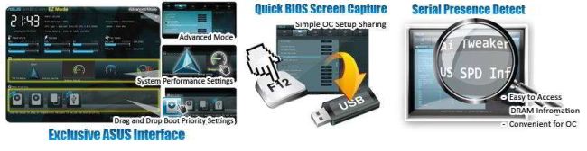 Das ASUS UEFI BIOS bietet das erste mausgesteuerte grafische BIOS, das über wählbare Modi sowie eine benutzerfreundliche Oberfläche verfügt, die der traditionellen Eingabe über die Tastatur weit voraus ist. Außerdem unterstützt es nativ voll ausgeschöpfte Festplatten mit mehr als 2,2TB in 64-bit-Betriebssystemen.