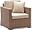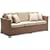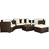 Durch die Kombination von einem wetterfesten Kunstharz-Korbgeflecht in einem natürlichen Farbton und dunkelbraunen Akzenten, durch die es aussieht wie echtes Holz, und einem in Dunkelbraun pulverbeschichtetem Aluminiumgestell ist er langlebig, robust und stabil. Ein Rückenkissen, Sitzauflagen und ein Sofakissen aus beigem Stoff (Stoffbezüge aus 100 % Polyester) werden mitgeliefert.