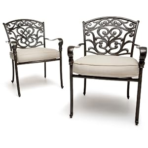 Die Aluminiumguss-Kollektion von Strathwood wurde durch die dekorative St.-Thomas-Reihe erweitert. Diese beiden Armlehnstühle geben Terrasse oder Veranda einen exklusiveren Charakter als es Holzmöbel täten, und sind dabei überraschend leicht, und doch sehr stabil.