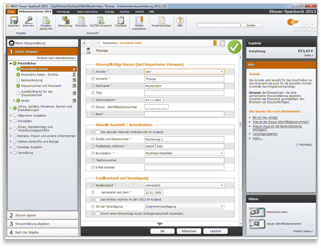 Der Marktführer und vielfache Testsieger (z.B. in Finanztest 3/2011, im Test: WISO Steuer-Sparbuch 2011) führt Sie am Bildschirm mit cleveren Tipps zur optimalen Steuererklärung 2012.