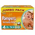 Pampers Simply Dry Gr.4 Maxi 7-18kg Jumbo Box, 2er Pack (2 x 74 Windeln)