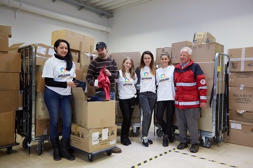 Rund 18.000 mittellose Menschen werden von der gemeinnützigen Organisation Münchner Tafel e.V. wöchentlich mit über 100.000 kg Lebensmitteln versorgt. Eine Gruppe Amazon Volunteers wollte selbst mit anpacken und hat bereits zum zweiten Mal bei der Essensausgabe im Münchner Stadtteil Thalkirchen unterstützt. Außerdem hat Amazon mehrere Kartons, vollgepackt mit Lebensmitteln wie Kaffee, Tee und Suppen an die Organisation gespendet.
