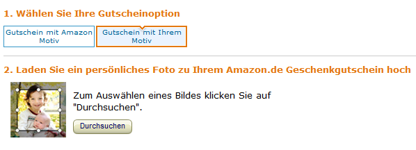 Gibt es Geschenkgutscheine mit unterschiedlichen Motiven?Bei E-Mail-Gutscheinen, Gutscheinen zum Ausdrucken und Geschenkkarten können Sie aus mehreren Motiven wählen. Klicken Sie während des Bestellvorgangs dazu auf "Design auswählen". Dabei muss in Ihrem Webbrowser JavaScript aktiviert sein, sonst wird Ihnen nur jeweils die Standardversion angeboten. Sie haben bei E-Mail-Gutscheinen sowie bei Gutscheinen zum Ausdrucken auch die Möglichkeit, ein persönliches Bild hochzuladen und einzufügen. Welche Art von Geschenkgutscheinen kann ich bestellen?Sie können einen E-Mail-Gutschein direkt an den Empfänger in alle Welt verschicken lassen. Mit der Option Gutschein zum Ausdrucken haben Sie sogar die Möglichkeit, einen Gutschein zu Hause auszudrucken. Wir erstellen für Sie jeden gewünschten Gutscheinbetrag bis zu EUR 1000,00. Diese Optionen sind versandkostenfrei. Geschenkkarten können nur nach Deutschland und Österreich per Post versendet werden. Bei einer österreichischen Lieferadresse entstehen Versandkosten. Die Auswahl des Gutscheinbetrages ist auf bestimmte Beträge eingeschränkt. Beispiele der Gutscheine Wie füge ich ein persönliches Bild in einen E-Mail-Geschenkgutschein oder in einen Gutschein zum Ausdrucken ein?Sie können beim Erstellen eines E-Mail-Geschenkgutscheins oder in eines Gutscheins zum Ausdrucken Ihrem Gutschein ein persönliches Bild hinzufügen, indem Sie es von Ihrem Computer hochladen. Gehen Sie hierzu wie folgt vor: