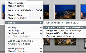 Dank der engen Integration mit Adobe Photoshop können Sie mehrere Bilder zu einer Panoramaansicht zusammenführen sowie Smart-Objekte und HDR-Funktionen nutzen (High Dynamic Range). Auch Dateien mit mehreren Ebenen werden unterstützt. Das Ergebnis wird automatisch in Adobe Photoshop Lightroom sichtbar.