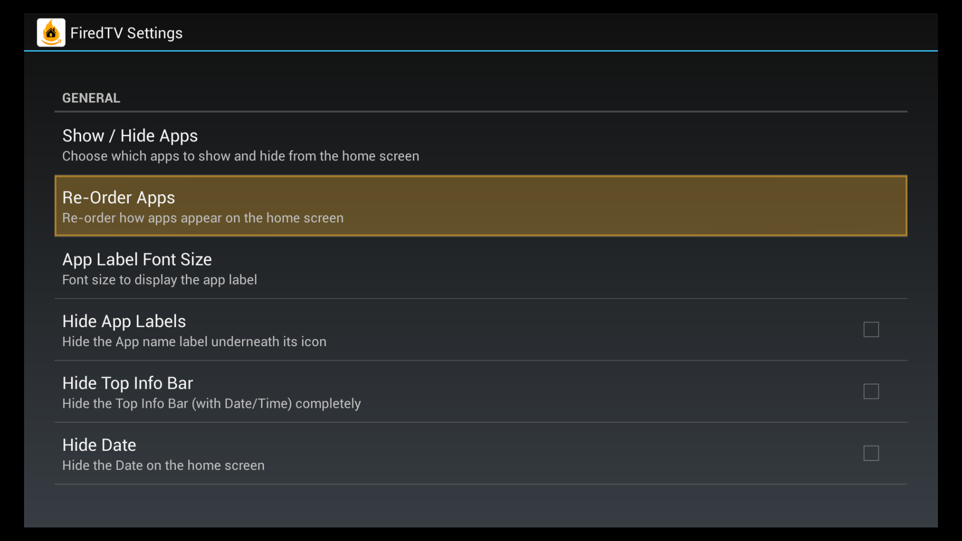 Easily go back to the default FireTV launcher whenever you like!