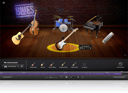 Willkommen in der digitalen Schule der Rockmusik. Ein Übungsraum im Mac Format. Ihr eigenes Aufnahmestudio. Wenn Sie ein Instrument lernen, Musik komponieren oder einen Song aufnehmen möchten, ist GarageBand richtig für Sie - ganz gleich, ob Sie Anfänger oder Rockstar sind.