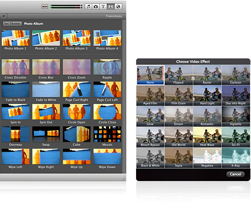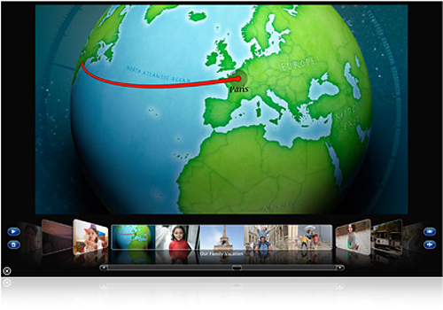 Sie sind auf der Suche nach einer unterhaltsamen Möglichkeit, Fotos anzusehen und an andere weiterzugeben? Dann erstellen Sie doch einfach eine Diashow mit den neuen Diashow-Themen. Jedes Thema enthält professionell gestaltete Layouts, Titel und Übergänge, die eine perfekte Kulisse für Ihre Fotos darstellen. Klicken Sie auf ein Thema, um die Diashow im Vollbildmodus mit passender Musik aus Ihrer iTunes Mediathek wiederzugeben.