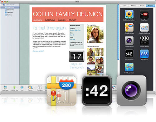 Sie wollen natürlich eine Website erstellen, die andere gern ansehen. Mit ein paar interaktiven Widgets ist genau das möglich. Sie können mit iWeb 09 ganz leicht per Drag&Drop RSS-Feeds, iSight Fotos und Videos, einen Zähler, YouTube-Videos, HTML- und andere dynamische Inhalte hinzufügen. Mit der iWeb Widget-Übersicht sind alle Widgets zugänglich und können an die gewünschte Stelle auf Ihrer Seite bewegt werden.