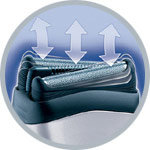 | Sanfte Rasur, Glatte Haut Braun Series 3 bewältigt kurze Stoppeln und längere Barthaare mit souveräner Gründlichkeit dank des 3-fach Schersystems mit Doppelscherfolie und Integralschneider.