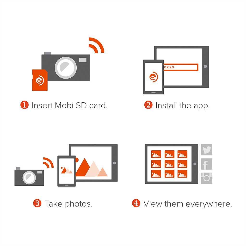Installieren Sie einfach die Eyefi-Mobi-Karte, laden Sie die kostenlose App herunter, machen Sie Fotos und beobachten Sie, wie diese auf Ihrem Lieblingsgerät erscheinen. So einfach ist das!