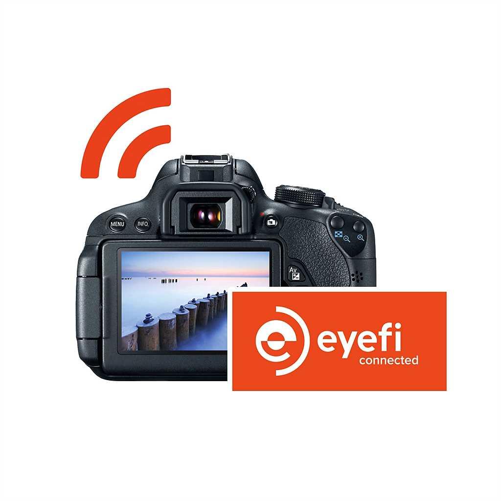 Bei beliebten Kameramodellen von Canon, Nikon, Sony und anderen bekannten Marken ist die Eyefi-Technologie integriert, um Ihnen eine noch bessere Nutzung zu ermöglichen. Eyefi Connected-Kameras erkennen, wenn eine Eyefi-Karte verwendet wird. Sie bleiben eingeschaltet, bis die Foto- und Video-Über-tragungen abgeschlossen sind und zeigen durch ein Symbol auf dem Bildschirm die Übertragungsaktivität an. Zudem bieten sie die Möglichkeit, eine WiFi-Verbindung mit der Eyefi-Karte über das Kamera-Menü zu aktivieren oder zu deaktivieren.