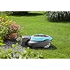 Der Gardena R 40 Li zieht konsequent nach dem Chaos-Prinzip seine Bahnen. Er lässt wirklich keinen Flecken aus. Alles wird sauber gemulcht. Gras-Schnitt fällt nicht an, da das Gras gemulcht und dem Rasen als Nährstoff wieder zugeführt wird. Wenn man keine flache Rasenkante verlegt, muss alle 10 Tage der Rand mit einer Gras-Schere nachgeschnitten werden. Aber dafür hat Gardena auch entsprechende Produkte im Angebot. Wir haben den Mäher auf unseren neu verlegten Rollrasen eingesetzt. Nachdem ich die alte Gras-Sode abgefräst hatte, habe ich das Begrenzungskabel und das Suchkabel auf der Grasnarbe verlegt. Darauf habe ich dann den Rollrasen gelegt. Dadurch war das Kabel von Anfang an unsichtbar. Wenn man sich konsequent an die Verlegehinweise hält, arbeitet der Mäher sehr zuverlässig. Bei uns läuft der Mäher immer von 16.00 Uhr bis 20.00 Uhr. Morgens wird der Rasen gewässert, so dass er zu Mähbeginn wieder trocken ist. Der Mäher läuft auch bei Regen, allerdings bilden sich dann unter dem Mäher kleine Rasenklumpen, die dann auf dem Rasen liegen bleiben. Das ist nur ein optisches Problem. Dem Mäher schadet der Regen nicht, trotzdem habe ich mir noch die Gardena-Garage zugelegt. Sie passt einfach optimal zum Mäher uns schützt ihn vor Witterungseinflüssen. Der Gardena-Mäher kann mit einem frei wählbaren 4-stelligen Code gesichert werden. Dadurch ist der Mäher für Diebe uninteressant. Die Messer sollten alle 4-6 Wochen ausgetauscht werden. Einmal in der Woche sollte man den Mäher von unten mit einer trockenen Bürste reinigen und darauf achten, dass die Messer freigängig sind. Wenn sich Gras unter die Messer setzt, bleiben sie gerne starr und mulchen das Gras nicht mehr sauber. Alles in allem ist der Gardena R 40 Li der "Golf" unter den Mährobotern. Er läuft und läuft und läuft und läuft....