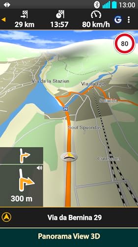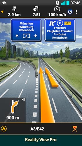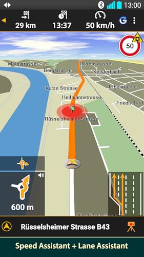 - Reale Beschilderungsanzeigen und Verkehrszeichen: Durch photorealistische Kreuzungsansichten und Verkehrszeichen verlieren Sie nie den Überblick.