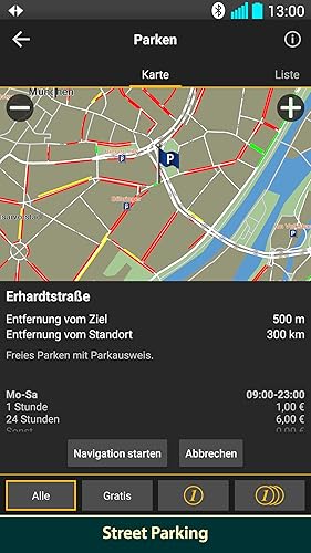 - Street Parking: Finden Sie nur mit NAVIGON freie Parkplätze am Straßenrand, filtern nach Preisklassen und navigieren direkt hin.