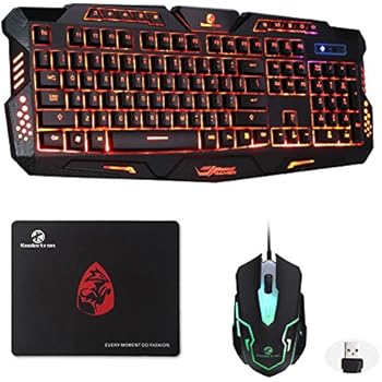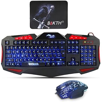 Gaming Tastatur und Maus Set - BAKTH LED Hintergrundbeleuchtung 3 Farbe Beleuchtung USB Tastatur und Gaming Maus mit Groß Mauspad, 8 Multimedia Tasten