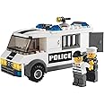 Aus dem Gefangenentransporter gibt es kein Entkommen mehr! Nachdem der Polizist den Ganoven geschnappt hat, schließt er ihn im gepanzerten Transporter ein und fährt ihn ins Gefängnis. LEGO City ist wieder sicher!