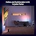 Das Licht ist hell, wenn man möchte, kann ansonsten in etlichen Farben und je nach Stimmung angepasst werden. Auch die Farbverläufe werden schön dargestellt. Hier können bis zu 3 verschiedene Farbwerte ausgewählt werden und entsprechend ein regenbogenartiger Verlauf dargestellt.