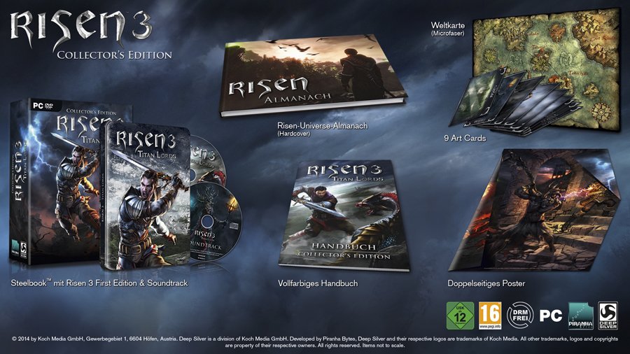 Neben der First Edition und der Limited Shadow Lord-Edition erscheint Risen 3 in einer Art Box-Verpackung auch als Collector’s Edition mit vielen Bonusinhalten!- Steelbook mit Risen 3 First Edition (DRM-frei) inkl. Soundtrack