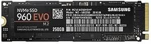 Samsung SSD 960 EVO NVMe M.2 250 GB mit bis zu 3.200MB/s sequentielle Lese- und 1.900MB/s Schreibgeschwindigkeit