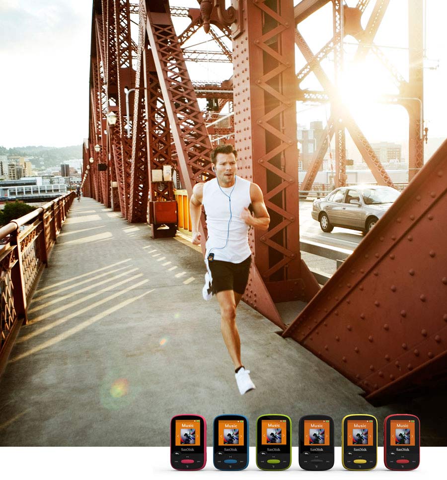 Der SanDisk Clip Sport MP3-Player macht in jeder Umgebung mit. Verwenden Sie ihn drinnen – im Fitnessstudio, in der Turnhalle oder zu Hause. Falls Sie lieber im Freien trainieren, können Sie dank deutlichem LCD-Display, einfacher Steuerung und des langlebigen Akkus leicht das Kommando über Ihren Hörspaß übernehmen. Seine Clipbefestigung sorgt dafür, dass er sicher befestigt ist, während Sie laufen.