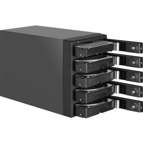 - Externes RAID-Gehäuse mit fünf Einschubschächten für 3,5 Zoll-SATA-Festplatten