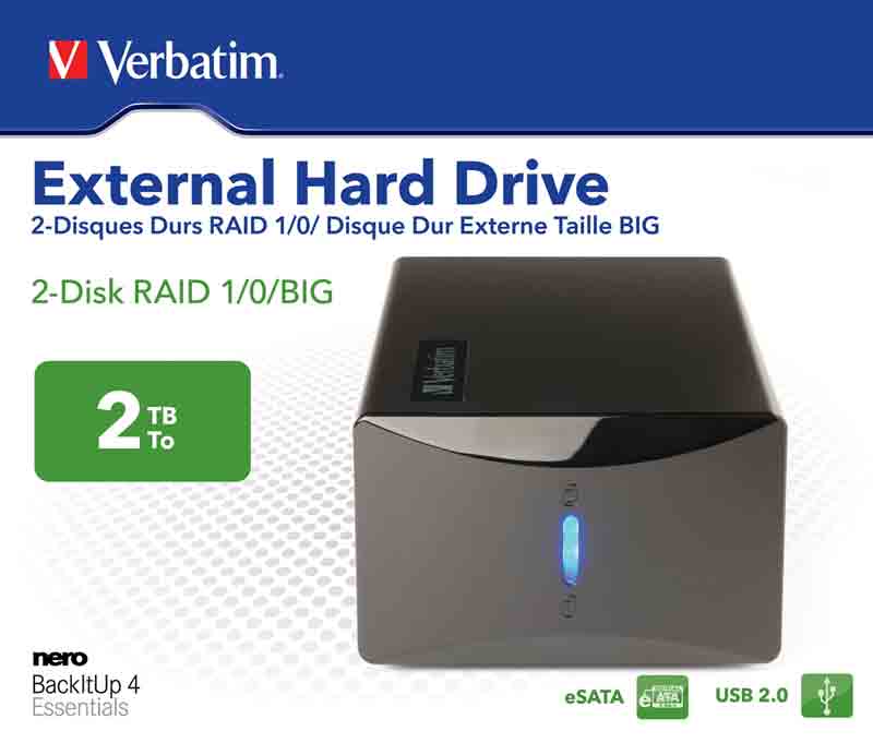 Verbatim 2-Disk RAID 2TB externe Festplatte (8.89 cm (3.5 Zoll), 7200rpm, eSATA/USB 2.0 Combo)