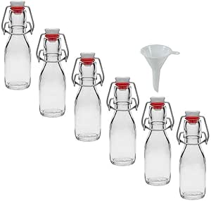 - Lieferumfang: 6 Glasflaschen mit 100 ml und Bügelverschluss inkl. einem weißen Trichter (Ø 5 cm) - in bester Qualität von Viva Haushaltswaren