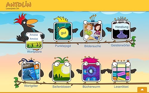 Mit Antolin dem Leseraben können Kinder ihre Lesefertigkeit auf spielerische Weise steigern. Dabei werden Konzentration und Wahrnehmung, Augenbewegung und Blickspanne trainiert. Dies fördert die Sicherheit bei der Worterfassung und verbessert die Lesefähigkeit der Kinder. Die liebevoll gestalteten und temporeichen Übungen bieten zusätzlich viel Aktion und Spielspaß so dass Lesetraining ganz nebenbei erfolgt! Durch das Spielen gegen die Zeit werden die Kinder zum Verbessern ihres Highscores und damit zum häufigen Wiederholen motiviert.