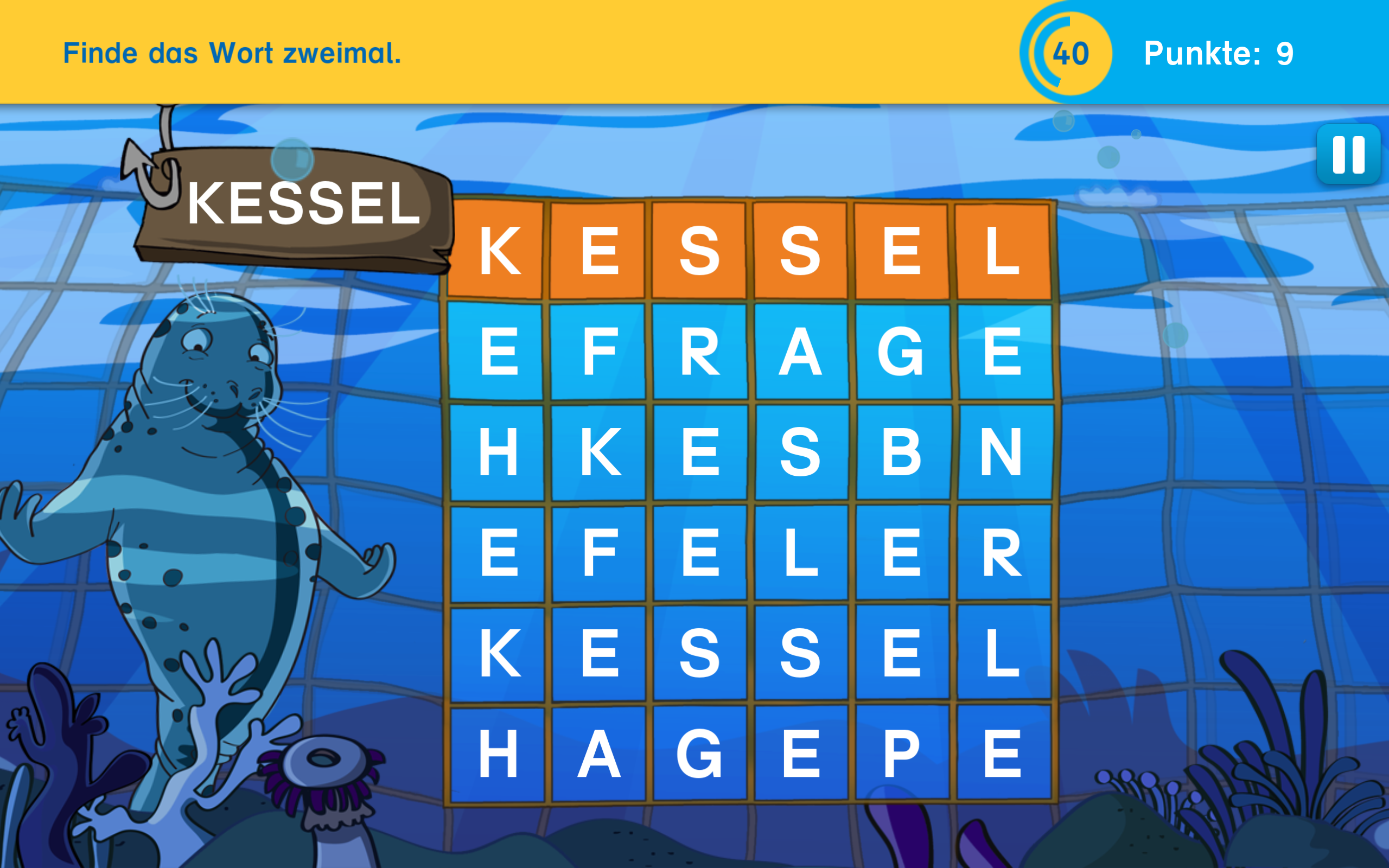 Bildersuche In einem Bild sollen möglichst schnell die gesuchten Ausschnitte gefunden und angetippt werden. Diese Übung trainiert die horizontale Blickführung und die visuelle Wahrnehmung. Das Kind muss genau hinsehen und sich konzentrieren. Die Blickspanne wird erweitert, wodurch der Lesefluss verbessert und ein schnelles sowie sicheres Lesen möglich wird.