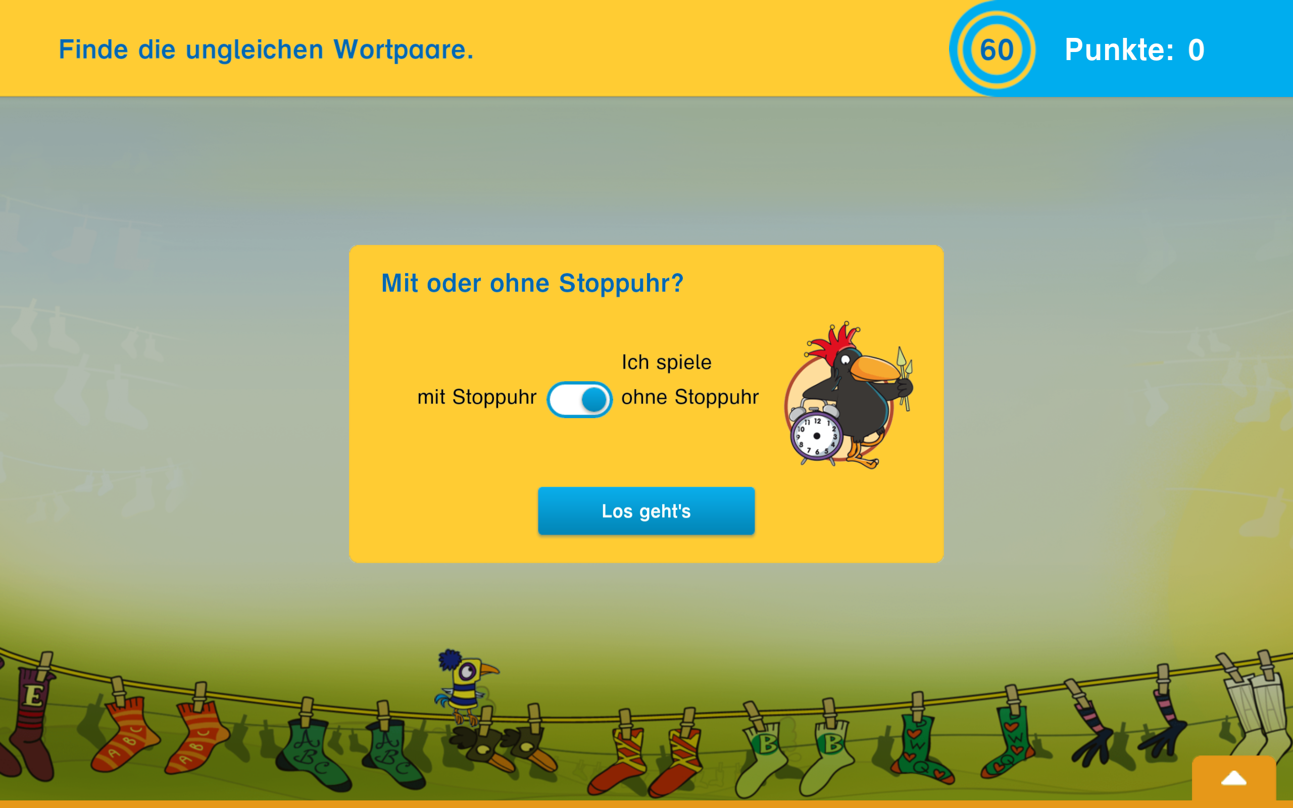 Neuer Modus „ohne Stoppuhr“. Hier können die Kinder auch ohne Zeitbegrenzung spielen