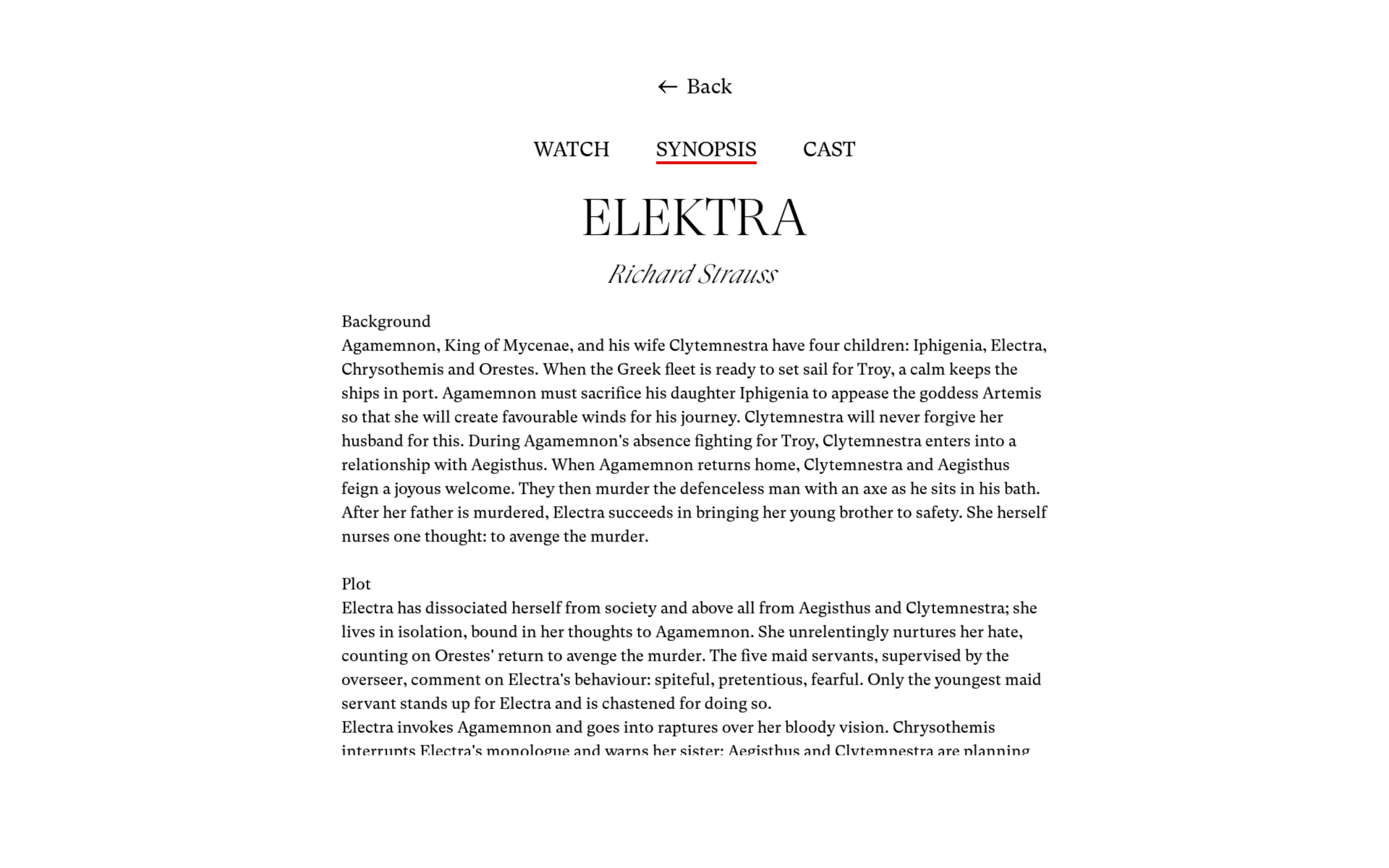 Two live channels: Many opera lovers want to have a view of the entire stage the whole time. However, sometimes it can be interesting to get a closer view of the singers and the events taking place on the stage as well.
