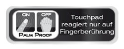 Die PalmProof-Technologie erkennt automatisch, ob der Benutzer das Touchpad mit dem Finger oder mit der Handfläche berührt. Auf diese Weise wird der Cursor tatsächlich nur dann bewegt, wenn das Touchpad mit dem Finger berührt wird. "Wischt" der Benutzer beim Tippen versehentlich über das Touchpad, reagiert der Cursor dagegen nicht, so dass der Schreibfluss nicht unterbrochen wird.