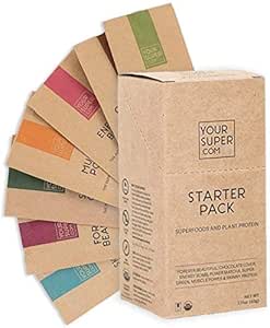 Your Super Superfoods und Pflanzenprotein-Starter Pack - 7 verschiedene Sachets Pulvermischungen mit Protein, Vitaminen, Mineralien, Antioxidantien, Koffein, Non-GMO, organischen Zutaten