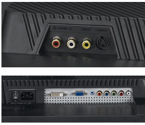 • integrierte Lautsprecher und diverse Anschlussmöglichkeiten (15pin D-Sub, DVI-D, CVBS, S-Video, Component)