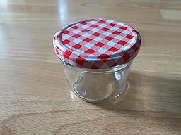 Sie haben eine schöne Füllmenge und sehen mit dem rot karierten Deckel auch immer nett aus.Das sind die richtigen zum verschenken.