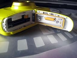Die Kamera schaut von außen schon recht gut gegen "äußere Einflüße" wie Wasser oder (freilich relativ gewertete) "harte Schläge" gewappnet zu sein. Das Kompakt-Objektiv ist hinter einer Glasscheibe "eingepackt" und das (in meinem Fall gelbe) Gehäuse ist mit einem glatten Lack versehen, an dem das Wasser gut abperlen kann.