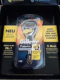 Erfreuen Sie sich an Gillettes konkurrenzloser Rasiertechnologie mit dem Gillette ProShield Rasierer für Männer erstmals mit Hautschutz vor und nach den Klingen. Er ist Gillettes erster Rasierer mit Lubrastrips vor und nach den Klingen zum besseren Schutz Ihrer Haut vor Irritationen. Der elegante gelbe Griff mit der FlexBall Technologie macht den Rasierkopf dreidimensional schwenkbar und bietet damit optimalen Hautkontakt selbst an schwierigen Stellen. Für die gründlichste Rasur von Gillette.
