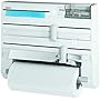 Der Gehäusedeckel wirkt nicht gerade sehr stabil. Die Abschneidfunktion lässt sich einigermaßen durchführen, wenn man einen stärkeren Druck ausübt. Der letzte Rest wird meist nicht ganz sauber durchtrennt, den kann man dann aber abreißen. Allerdings muss man beim Herausziehen der Folien sehr aufpassen, dass die Alufolie da nicht schon an einem Ende einreißt und sich alles verknittert. Möglicherweise liegt das aber auch an der Billigheimerfolie, die ich normalerweise verwende. Eine schöne Lösung ist die Befestigung der Küchenrolle. Ich hatte vorher einen Rollenbalter bei dem die Rolle eingeklinkt werden musste. Ein Plastikclip war nach einiger Zeit defekt und damit war der ganze Spender nicht mehr funktionsfähig. Bei diesem Gerät zieht man eine Plastikstange einfach aus schrägen Einsparungen heraus, da kann meiner Meinung nach nichts kaputt gehen und eine neue Rolle ist blitzschnell montiert